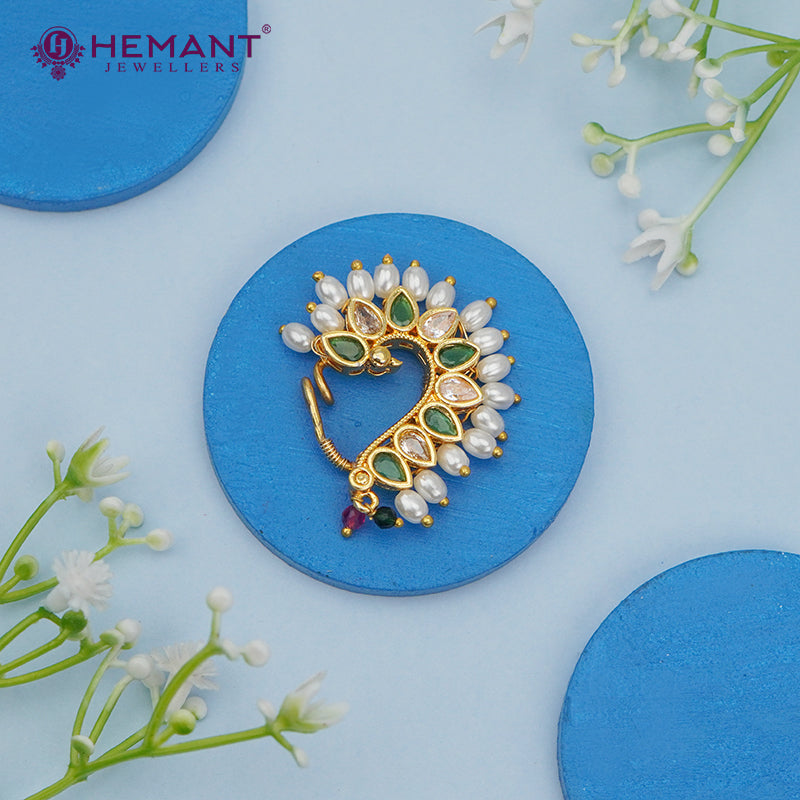 Elegant and timeless, our Traditional Bridal Wear Nath/Nose Pin is the perfect accessory for your special day. Handcrafted with intricate details and adorned with sparkling stones, it adds a touch of sophistication to your traditional bridal look. Make a statement with this exquisite piece and create unforgettable memories.