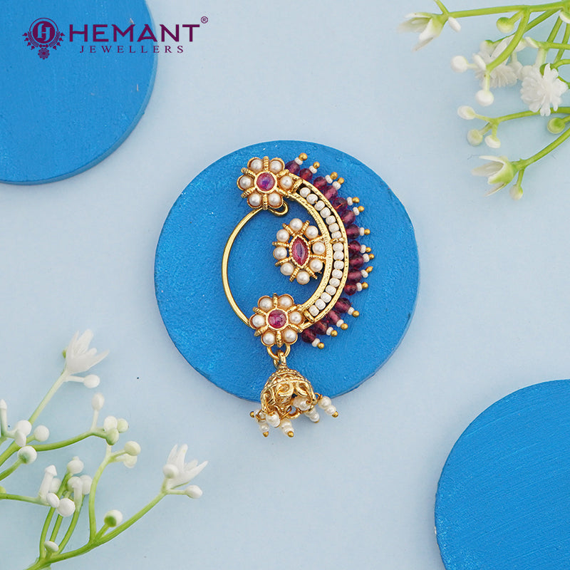 Elegant and timeless, our Traditional Bridal Wear Nath/Nose Pin is the perfect accessory for your special day. Handcrafted with intricate details and adorned with sparkling stones, it adds a touch of sophistication to your traditional bridal look. Make a statement with this exquisite piece and create unforgettable memories.