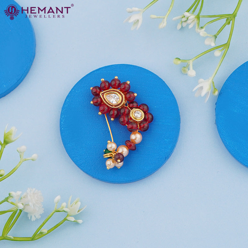 Traditional Maharashtrian Kolhapuri Micro Gold Plated Nath Red(Nose Pin)