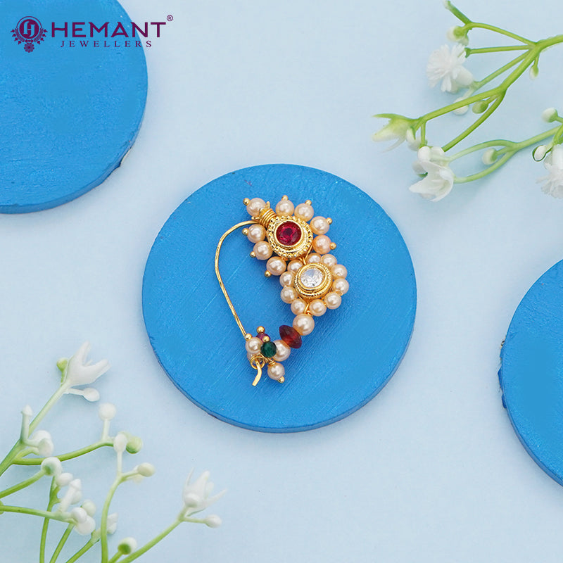 Traditional Maharashtrian Kolhapuri Micro Gold Plated Nath A (Nose Pin)