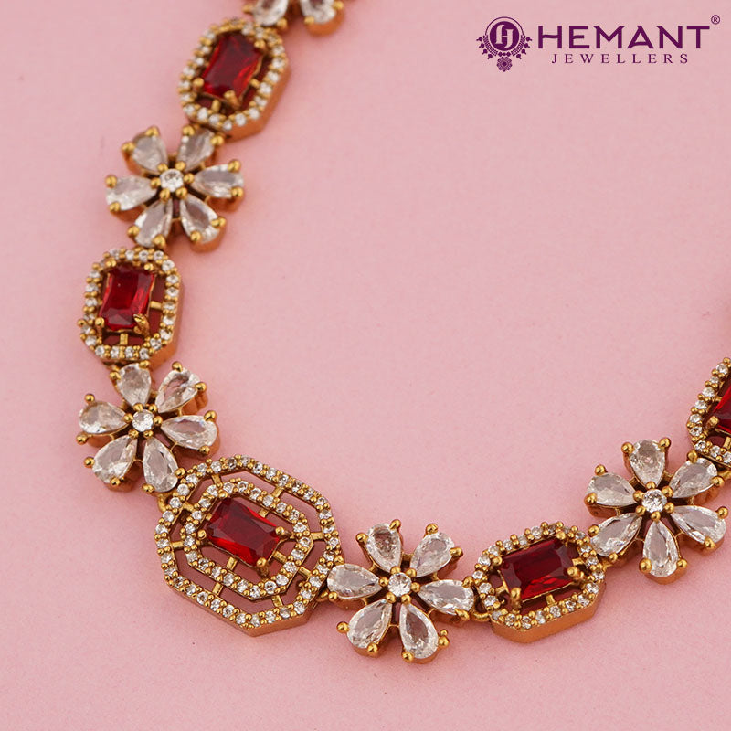 Unit price perThis set, paired with complementing earrings, exudes the splendor of South Indian temple jewelry, making it ideal for weddings, festive events, and cultural festivities. Crafted from top-quality gold-plated material, it guarantees a lavish look and lasting strength, all while remaining lightweight for effortless wear.