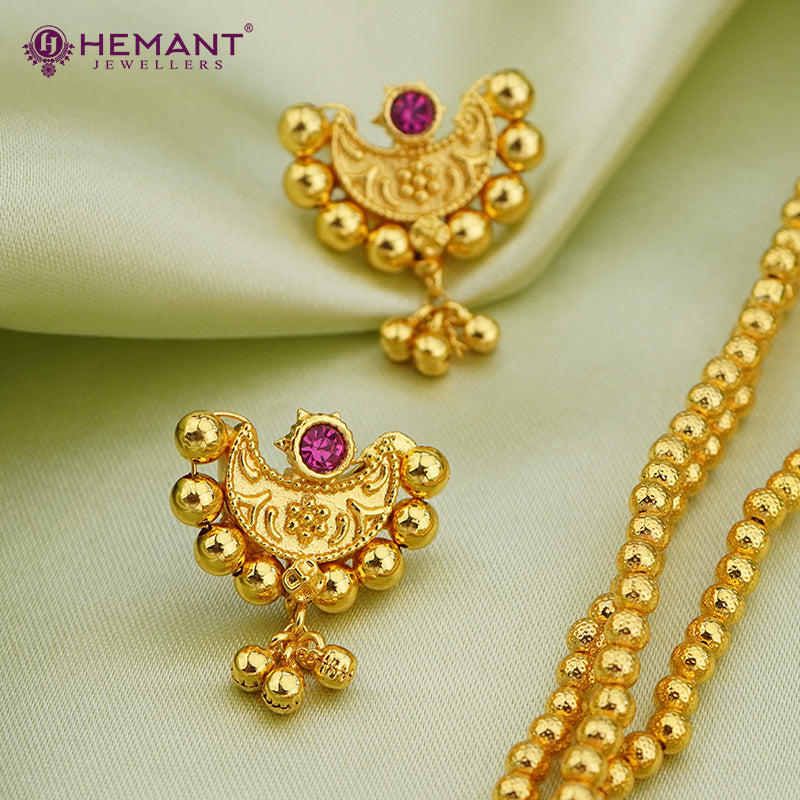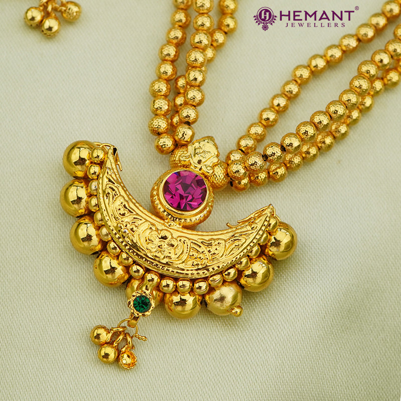 Chex Mani 3 Line Mala with Chand pendant (with earring)