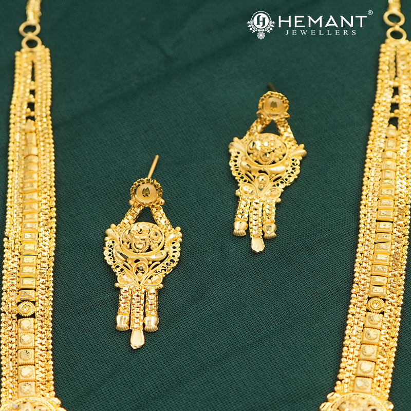 This beautifully crafted Maharashtrian rani haar by Hemant Jewellers exudes elegance with its distinctive floral pendant. The pendant is intricately designed, combining traditional artistry with fine detailing. Perfect for special occasions, this rani haar is a symbol of love and commitment, making it a cherished addition to any jewelry collection. Embrace the beauty of tradition with this timeless piece.