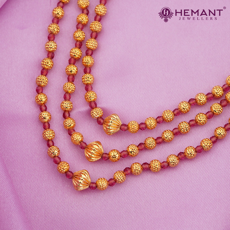 Traditional Maharashtrian Kolhapuri Spot Mala Ruby Color 3 Line - 1687