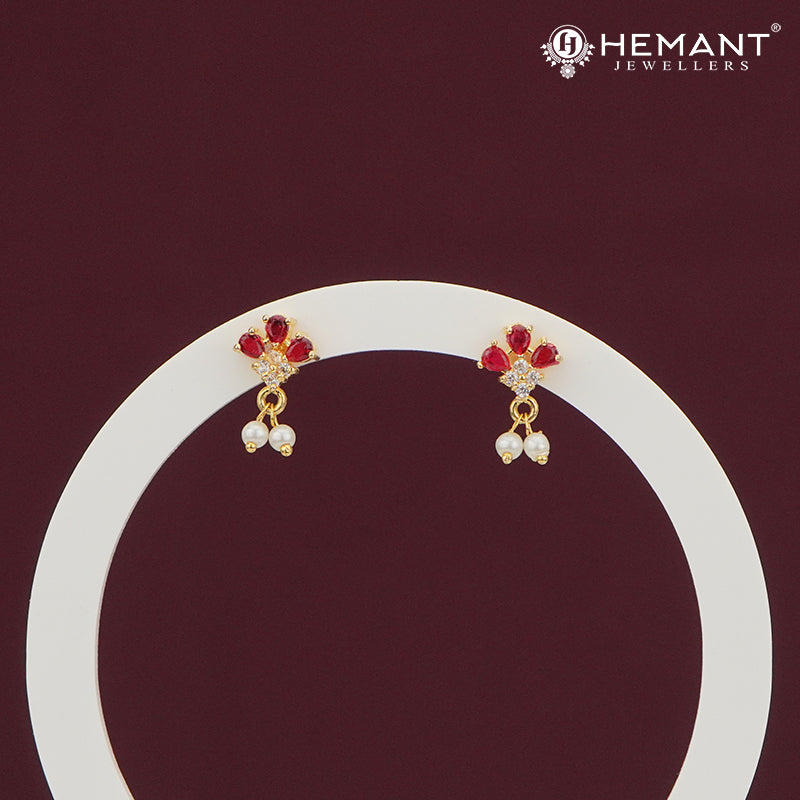 Unit price perAdd a delicate touch of elegance to your ethnic ensemble with these charming floral earrings. Designed with ruby red teardrop stones and shimmering white AD stones, the studs bloom beautifully into a petite floral pattern. The hanging pearl drops add movement and grace, making them ideal for festive wear, traditional occasions, or daily styling with sarees and kurtis. Finished in micro gold plating for a rich and radiant look.