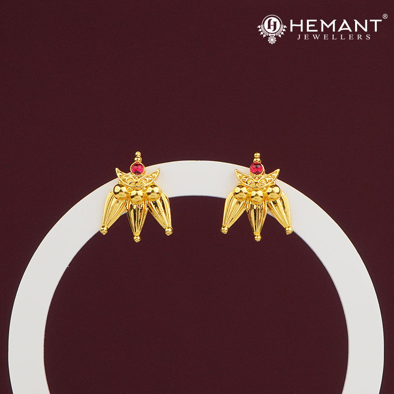 Unit price perInspired by classic motifs, these Chandrakor-style Ear Tops from Hemant Jewellers feature a striking crescent moon shape adorned with a central red stone. Below the crescent, three sleek and pointed golden leaf-shaped drops add movement and charm to the design. Finished in micro gold plating, this pair is perfect for those who love traditional patterns with a lightweight, elegant touch.