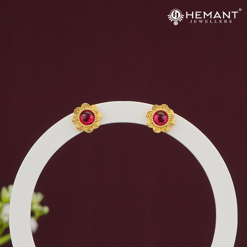 Unit price perBring a hint of playful elegance to your everyday style with these Jilebi-inspired Stud Earrings from Hemant Jewellers. Designed in a charming circular swirl motif resembling the traditional sweet, these earrings feature a deep red center stone nestled within intricate gold detailing. Their minimal yet distinct look makes them ideal for casual ethnic outfits or as a daily wear essential.