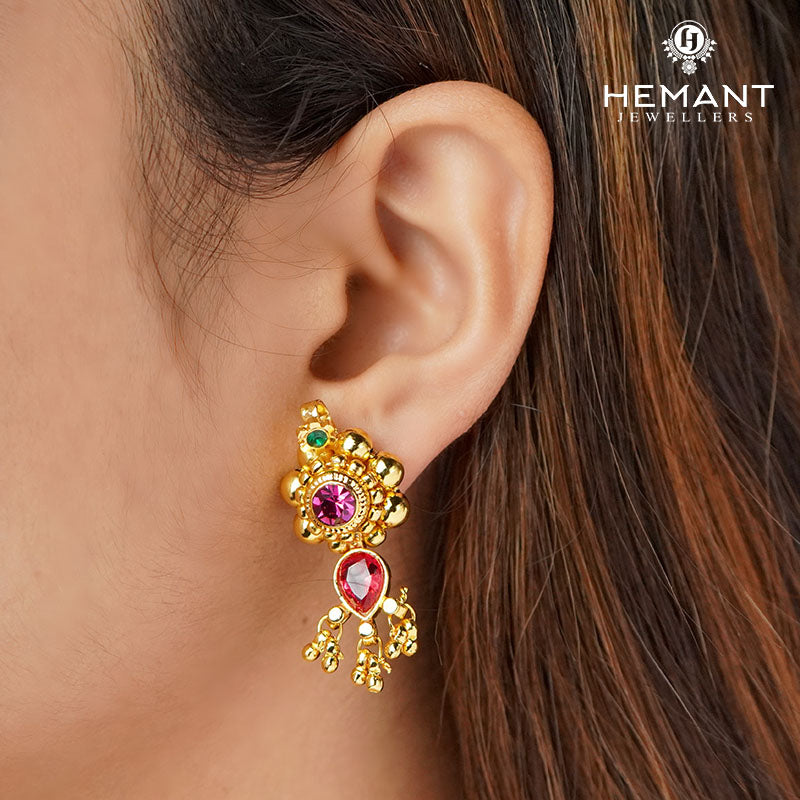 Unit price perMaharashtrian earrings, also known as "tops" or "karnaphool," are a stunning display of traditional craftsmanship and cultural significance. These earrings come in a variety of styles, each offering a unique touch of beauty.