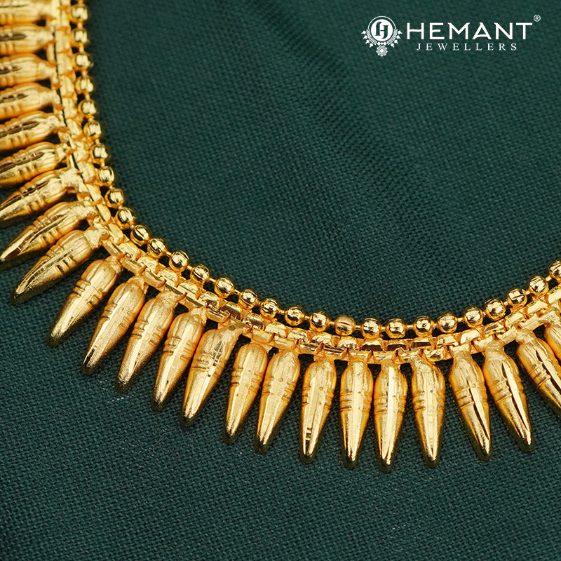 Elegant Maharashtrian chipli-style necklace set featuring vertical bar motifs and matching earrings.