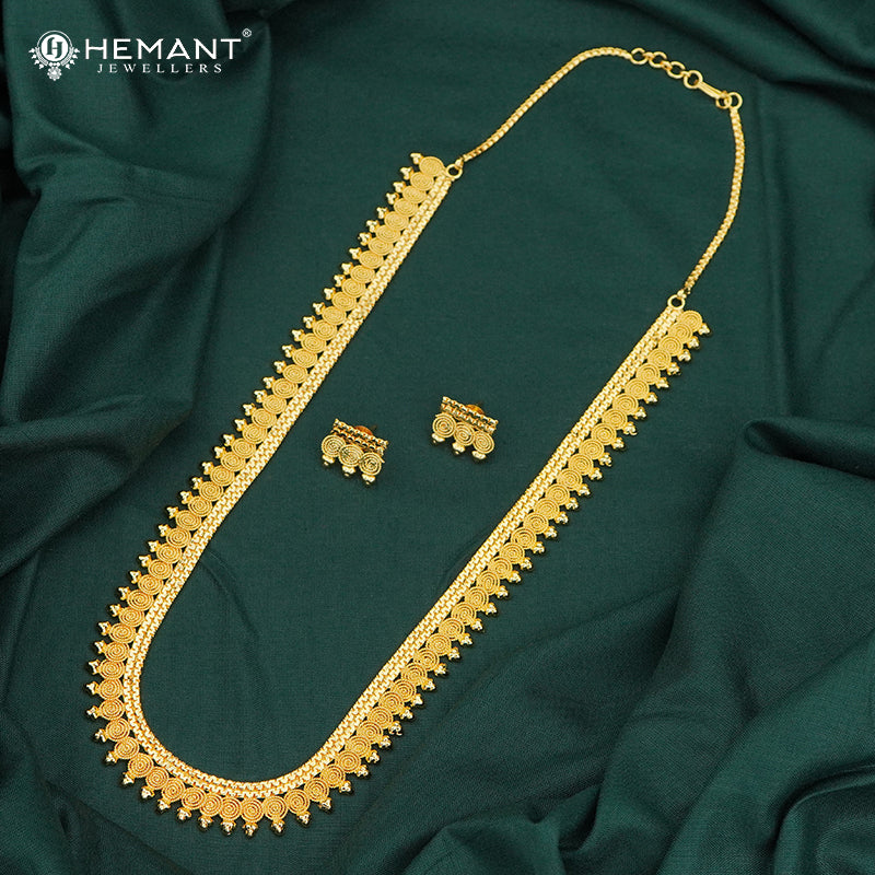 Traditional Maharashtrian Sunburst Motif Long Haar Necklace Set - 4236