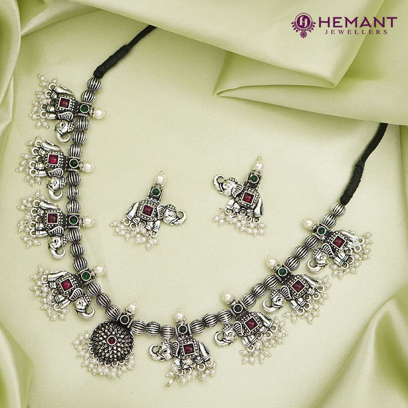 Traditional Oxidized Guttapusalu Haar Hathi Silver WT