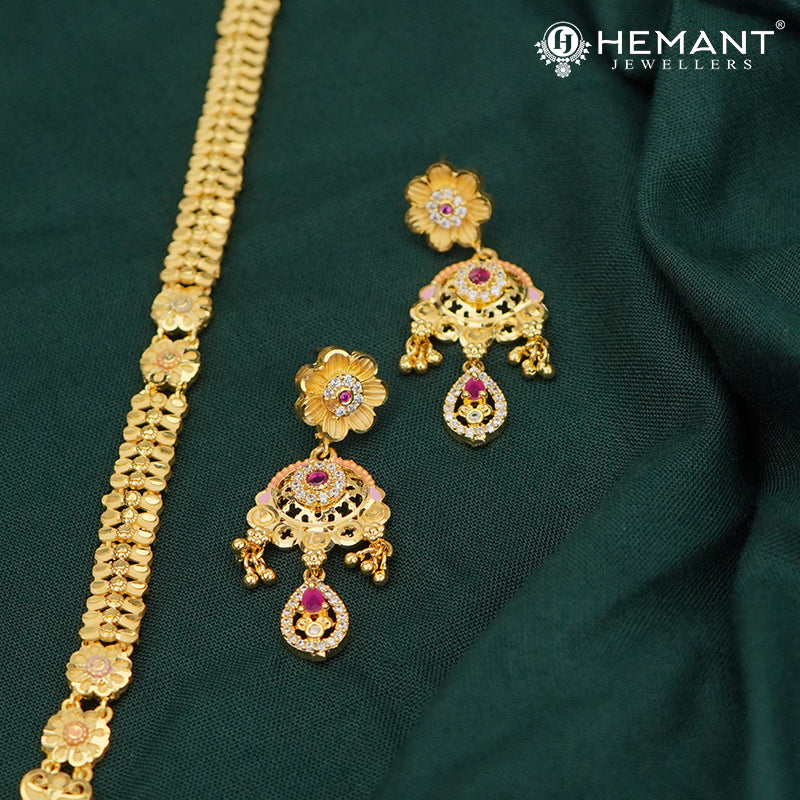 The long-forming necklace is paired with complementary earrings, completing the ensemble with a regal touch. Ideal for bridal wear, festive occasions, and cultural events, this Rajwadi necklace enhances sarees, lehengas, and traditional Maharashtrian or South-Indian attire.