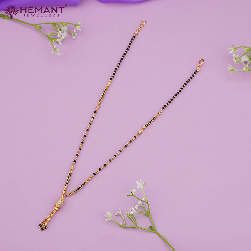 Delicate Gold-Tone Mangalsutra with CZ Pendant & Fine Black Bead Chain - 4295