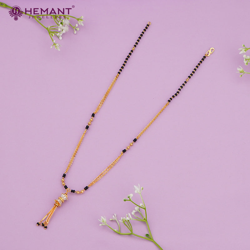 Unit price perCelebrate the essence of marital elegance with this uniquely crafted imitation mangalsutra by Hemant Jewellers. Designed with precision, it features alternating segments of glossy black beads paired with golden double-layer chain detailing that gives a refined, graceful look.