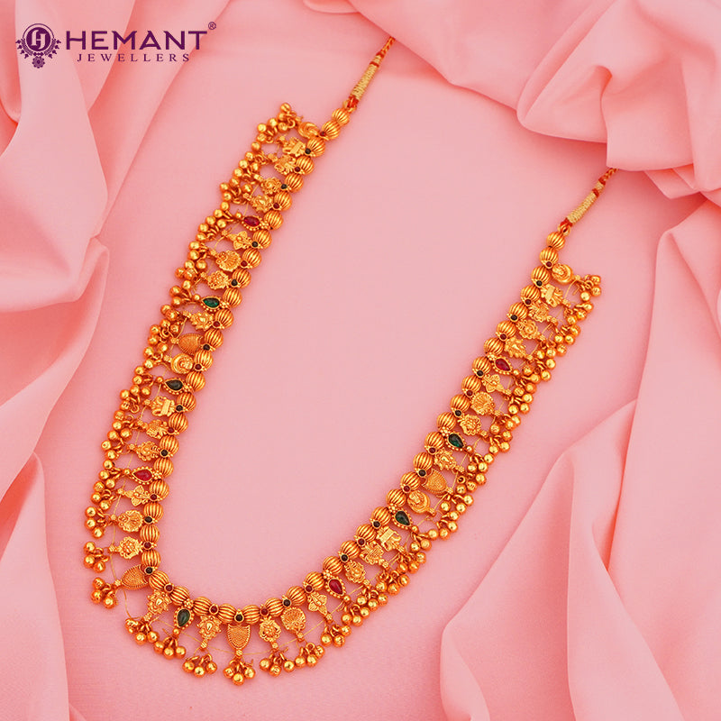 The Kolhapuri Saaj is a stunning necklace, a unique piece of jewelry from Maharashtra, India. Known for its intricate designs and rich symbolism, it's a beautiful way to add a touch of tradition to your look.