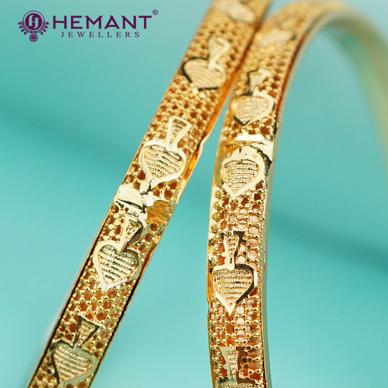 The uniform gold tone and precise craftsmanship ensure that these bangles complement sarees, salwar suits, and Indo-western outfits alike.