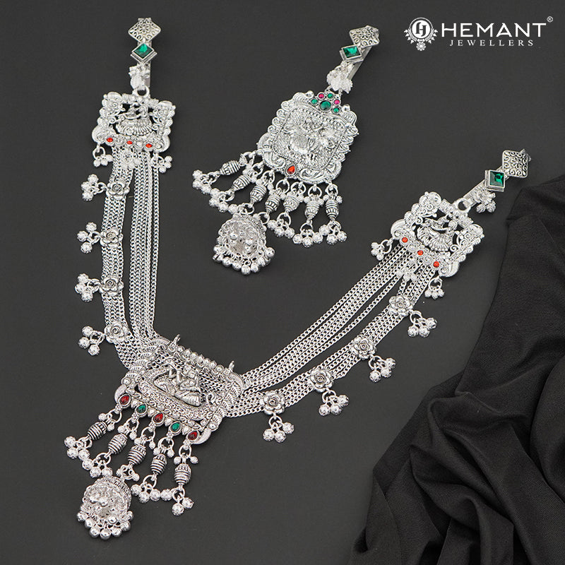 Traditional Oxidized Silver-Tone Radha Krishna Motif Mekhala with Matching Juda – Bridal Waist Ornament – 4191