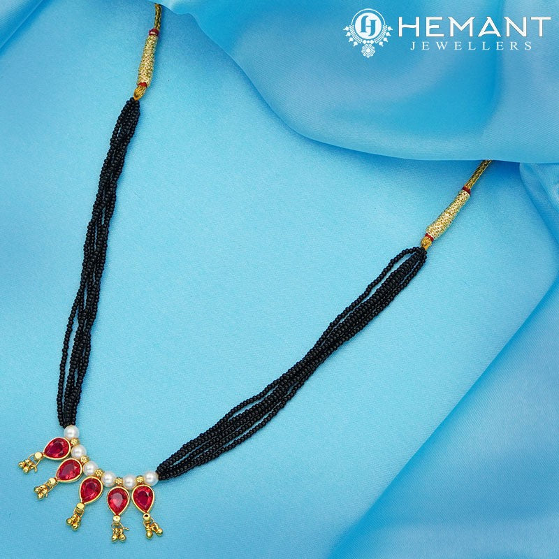 Traditional Maharashtrian Kolhapuri Mangalsutra 5 Panadi 6-8 Red