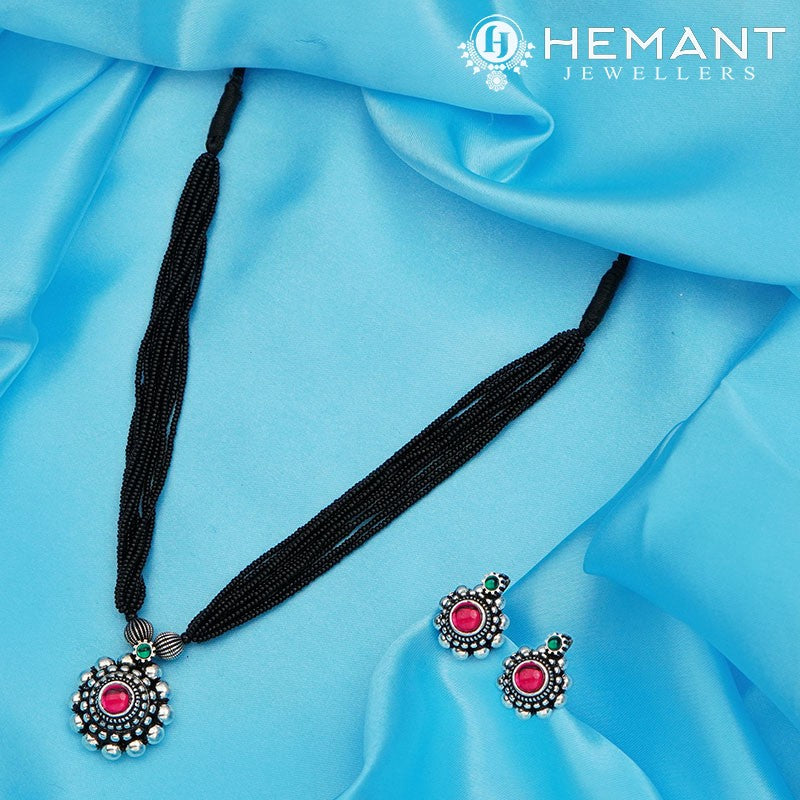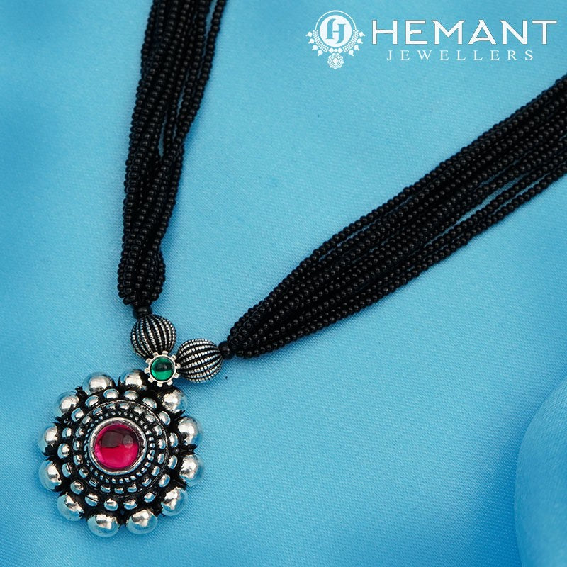 Traditional Maharashtrian Kolhapuri Mangalsutra Plain Saaj 0-2-5 Silver With Tops