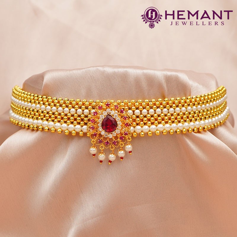 Handcrafted Kolhapuri Thushi made with micro gold plating at Hemant Jewellers. Shop online for unique, traditional jewelry pieces and add a touch of elegance to your look.