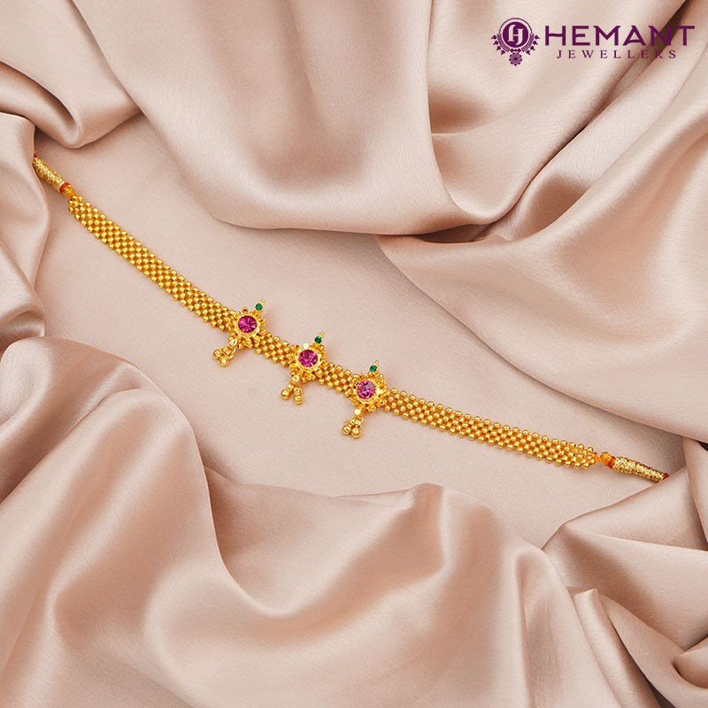 Unit price perHandcrafted Kolhapuri Thushi made with micro gold plating at Hemant Jewellers. Shop online for unique, traditional jewelry pieces and add a touch of elegance to your look.