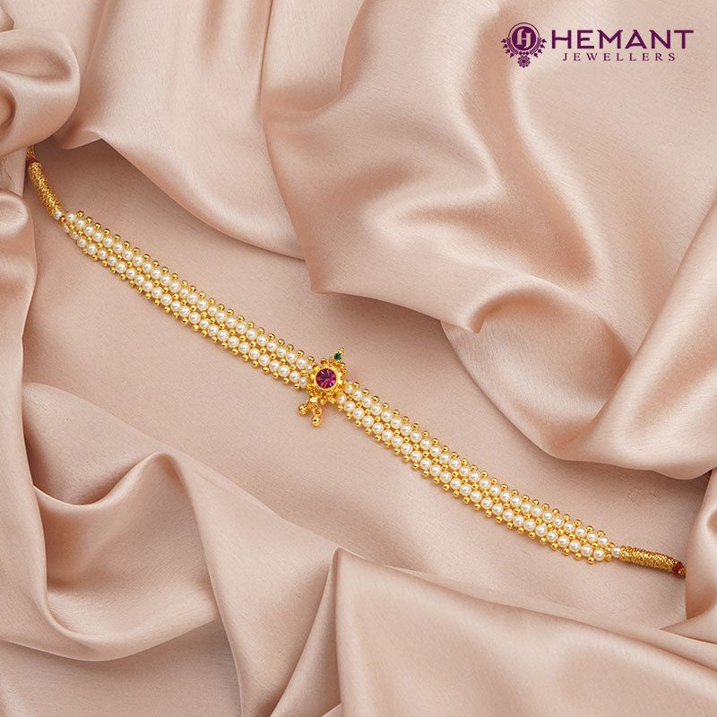 Unit price perHandcrafted Kolhapuri Thushi made with micro gold plating at Hemant Jewellers. Shop online for unique, traditional jewelry pieces and add a touch of elegance to your look.
