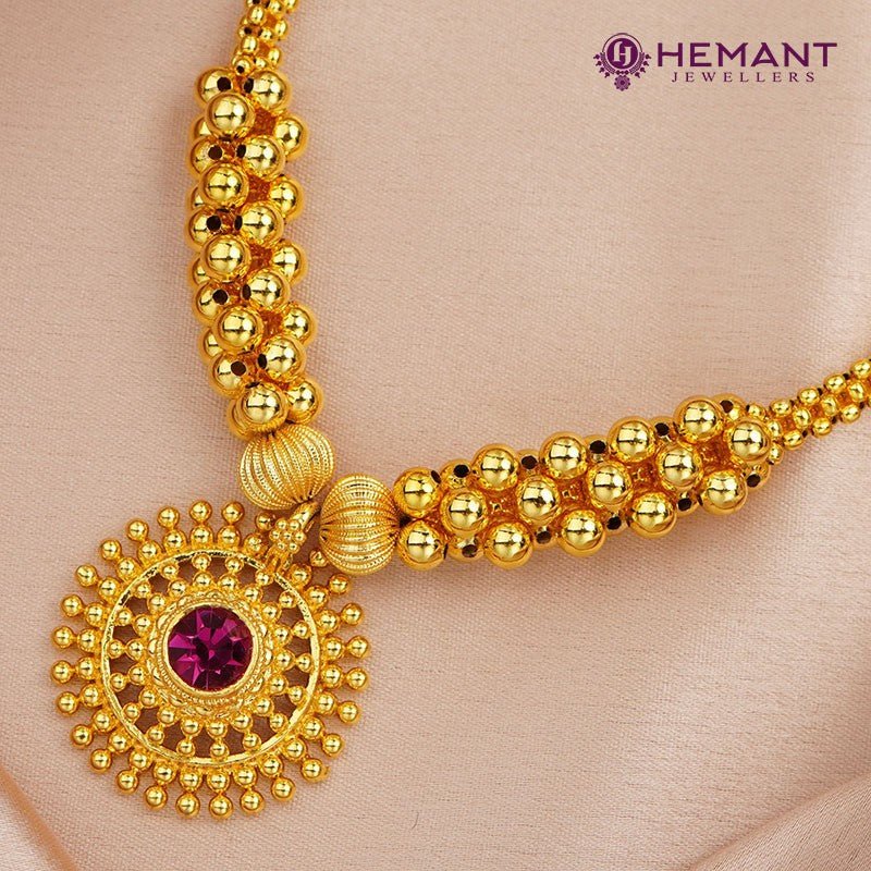 Handcrafted Kolhapuri Thushi made with micro gold plating at Hemant Jewellers. Shop online for unique, traditional jewelry pieces and add a touch of elegance to your look.