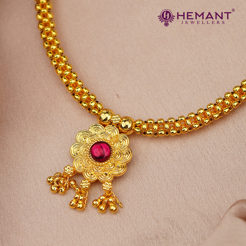 Handcrafted Kolhapuri Thushi made with micro gold plating at Hemant Jewellers. Shop online for unique, traditional jewelry pieces and add a touch of elegance to your look.