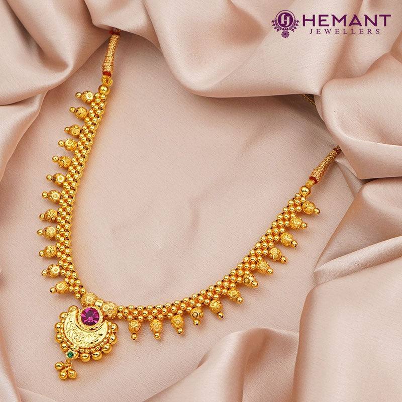 Handcrafted Kolhapuri Thushi made with micro gold plating at Hemant Jewellers. Shop online for unique, traditional jewelry pieces and add a touch of elegance to your look.