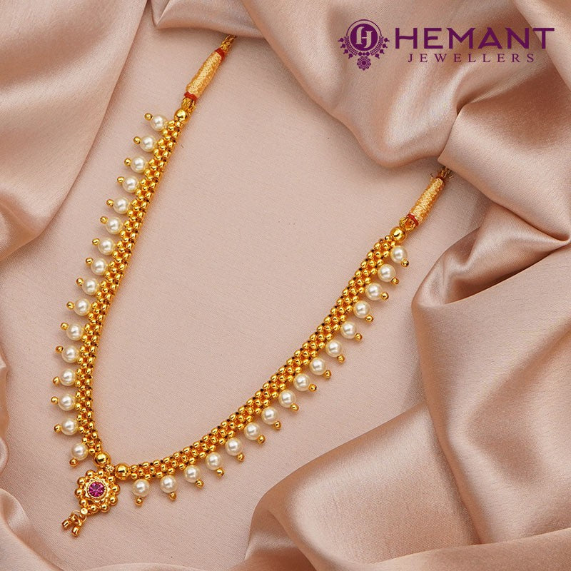 Handcrafted Kolhapuri Thushi made with micro gold plating at Hemant Jewellers. Shop online for unique, traditional jewelry pieces and add a touch of elegance to your look.