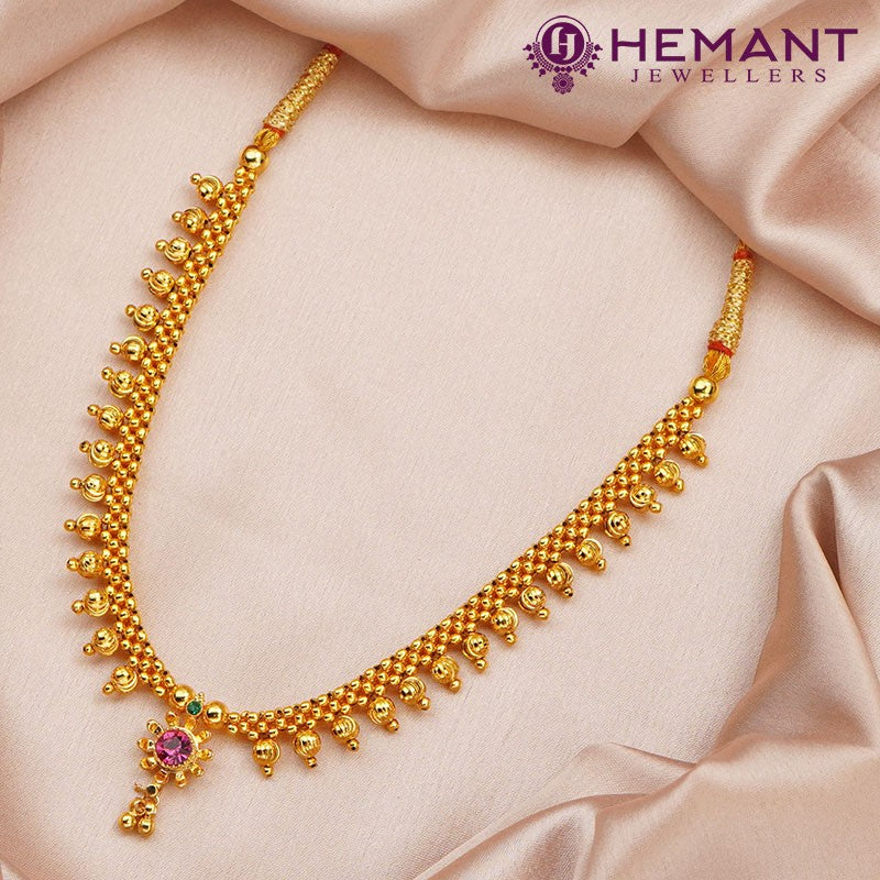 Handcrafted Kolhapuri Thushi made with micro gold plating at Hemant Jewellers. Shop online for unique, traditional jewelry pieces and add a touch of elegance to your look.