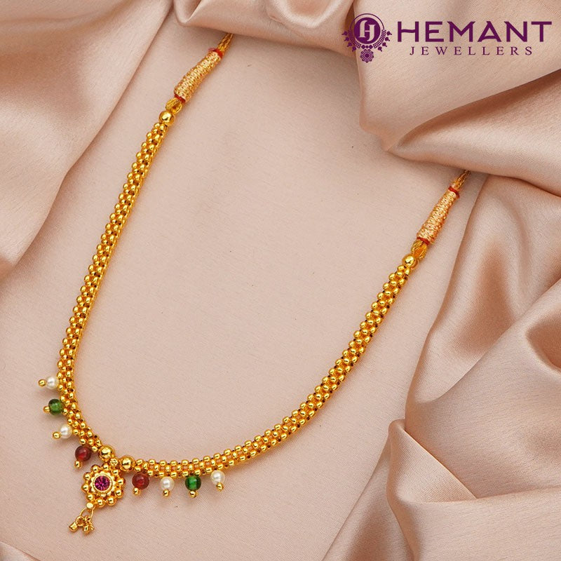 Handcrafted Kolhapuri Thushi made with micro gold plating at Hemant Jewellers. Shop online for unique, traditional jewelry pieces and add a touch of elegance to your look.