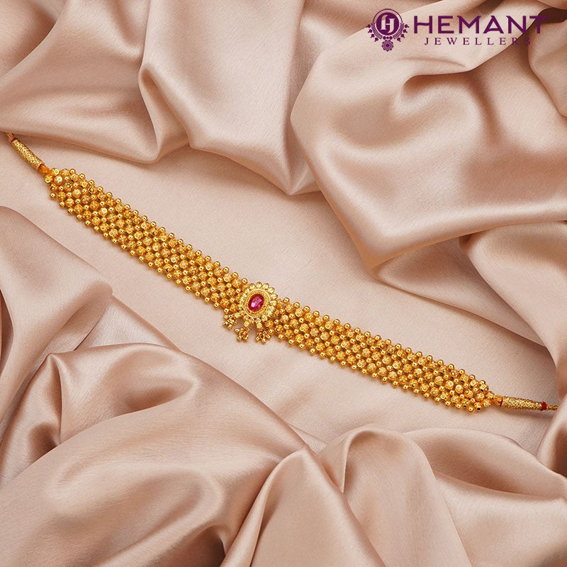 Handcrafted Kolhapuri Thushi made with micro gold plating at Hemant Jewellers. Shop online for unique, traditional jewelry pieces and add a touch of elegance to your look.