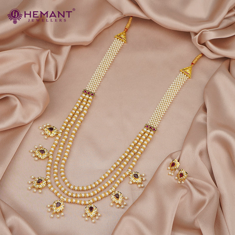 Traditional Maharashtrian Kolhapuri Thushi Patta Moti Paan Pendal with Earrings