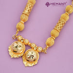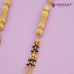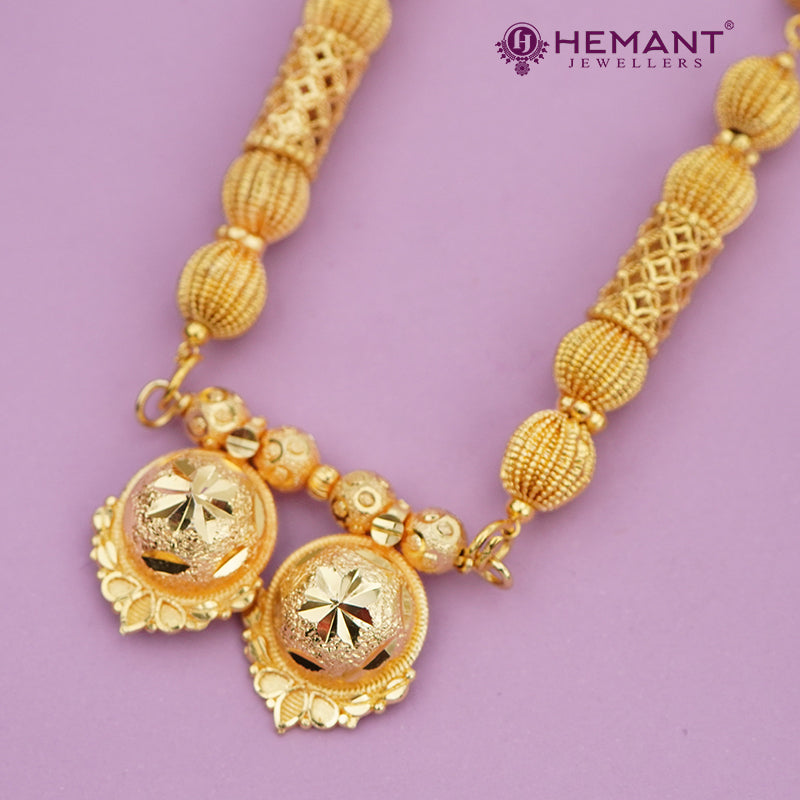 Introducing a timeless piece from Hemant Jewellers – this classic Maharashtrian mangalsutra (D.No. 4807) features a single-line black beads chain with an intricately crafted double vati (वाटी) pendant. The pendant is adorned with delicate pearl hangings and detailed filigree work, perfectly capturing the elegance and cultural charm of traditional Maharashtrian jewelry.