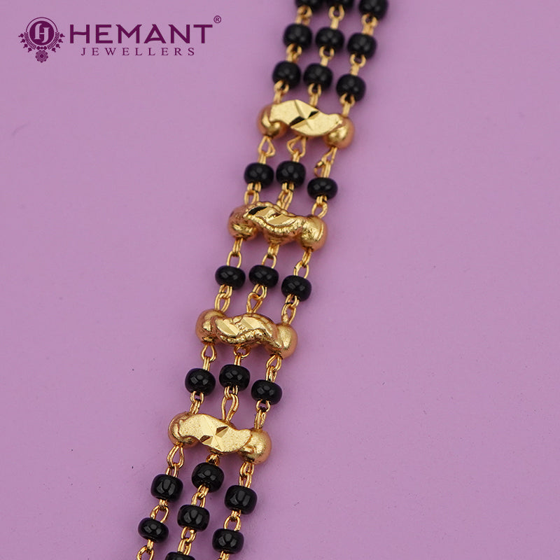 Micro Gold-Plated Multi-Strand Mangalsutra with Wati/Vati Pendant – Black & Gold Beaded Design 4392-93