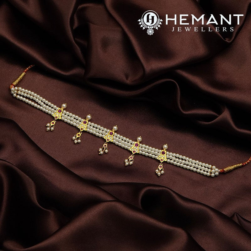 Traditional Maharashtrian Chinchpeti Moti Har 5 Kasturi - Chinchpeti Necklace