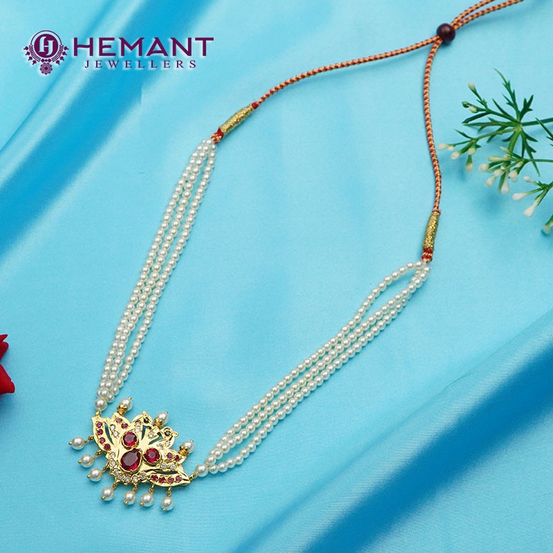 Traditional Maharashtrian Kolhapuri Moti Mala 3 Line Medium Pendal