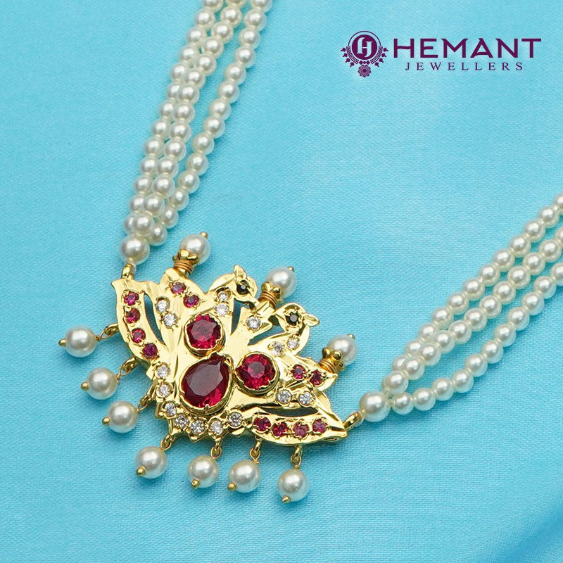 Check out our collection of pearl necklaces, also known as "Moti Haar" or "Chinchpeti". Our selection offers a range of styles, from elegant and understated to bold and eye-catching.