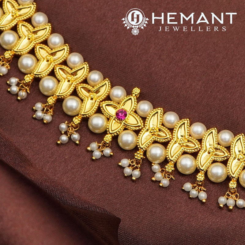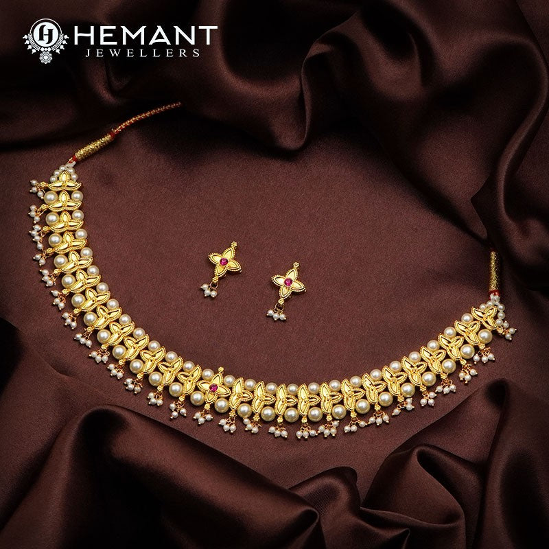 Check out our collection of pearl necklaces, also known as "Moti Haar" or "Chinchpeti". Our selection offers a range of styles, from elegant and understated to bold and eye-catching.