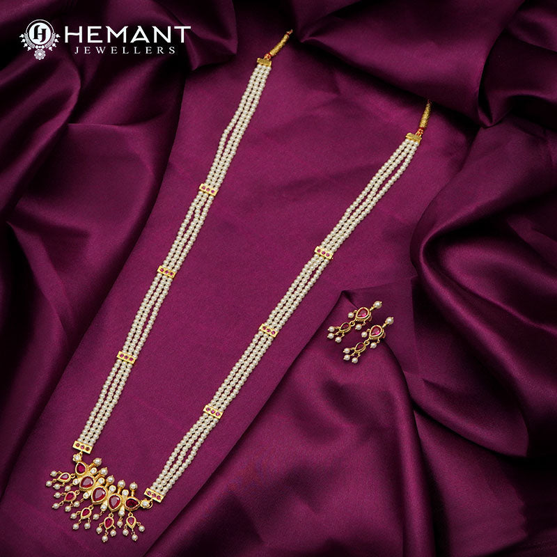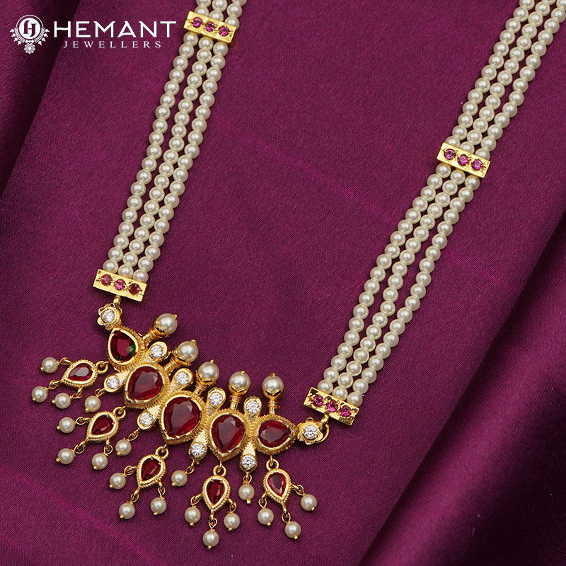 Traditional Maharashtrian Moti Har Long ChinchPeti 3 Line Puneri 5 Stone WT