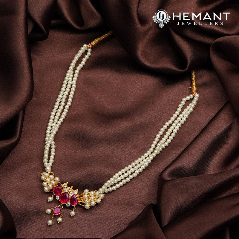 Traditional Maharashtrian Moti Mala 3 Line Draksha 3 Stone