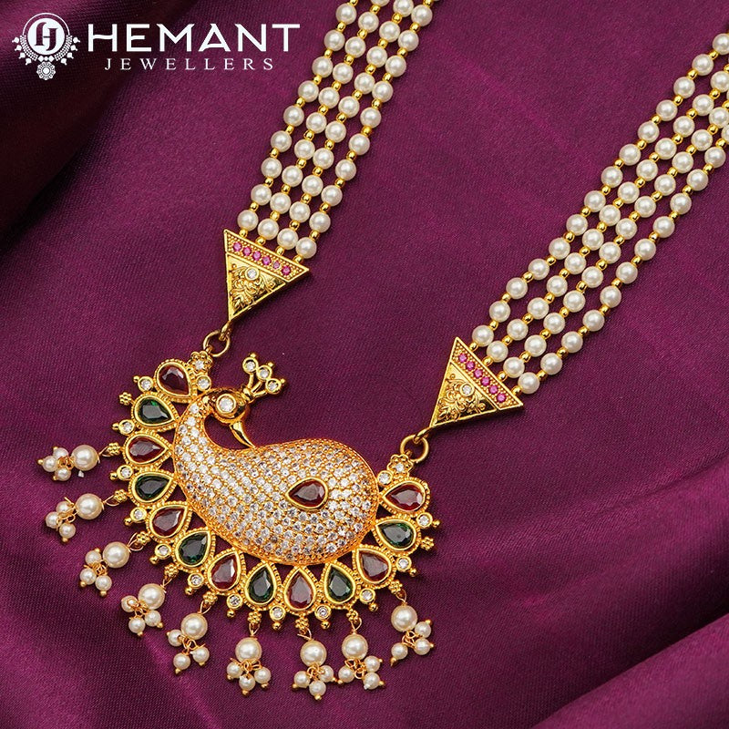 Traditional Maharashtrian Rani Haar Moti Peacock Stone WT