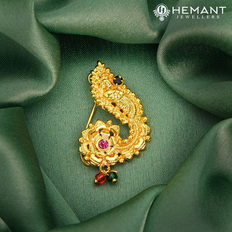 Traditional Maharashtrian Kolhapuri Micro Gold Plated Nath Golden B Peacock (Nose Pin)