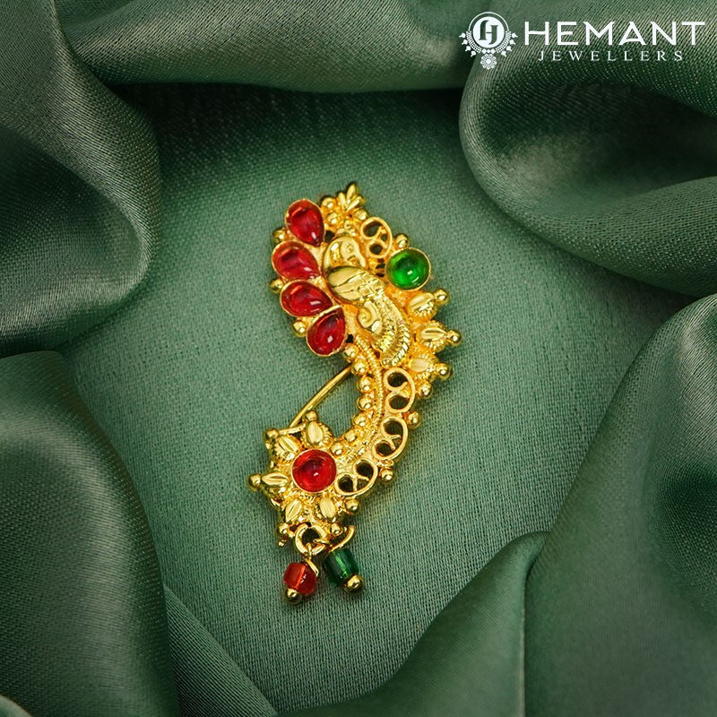 Traditional Maharashtrian Kolhapuri Micro Gold Plated Nath Golden E (Nose Pin)