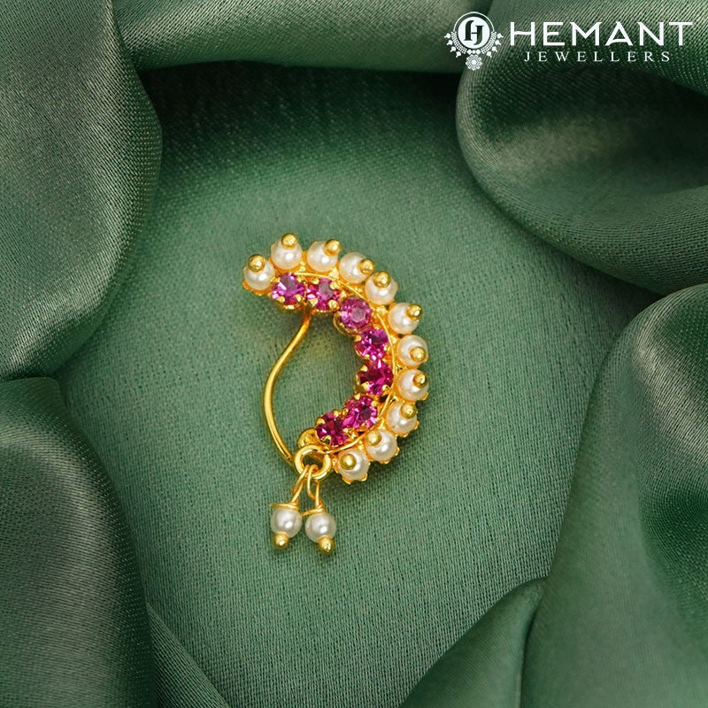 Traditional Maharashtrian Kolhapuri Micro Gold Plated Nath M (Nose Pin)