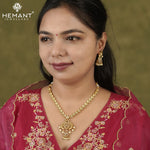 Unit price perThis exquisite necklace set captures the timeless beauty of traditional Indian craftsmanship.Elevate your ethnic wardrobe with this stunning accessory designed for maximum impact. The matching earrings mirror the detailed floral and scrollwork elements found in the necklace, ensuring a cohesive and sophisticated look. This piece is ideal for complementing traditional attire such as sarees, lehengas, or salwar suits during weddings, pujas, or significant celebrations. Its detailed craftsmanship and vibrant stone placements ensure it stands out, offering a luxurious, statement appeal without compromising on traditional style. This combination of classic design and dazzling stone work makes it a cherished addition to any jewellery collection.