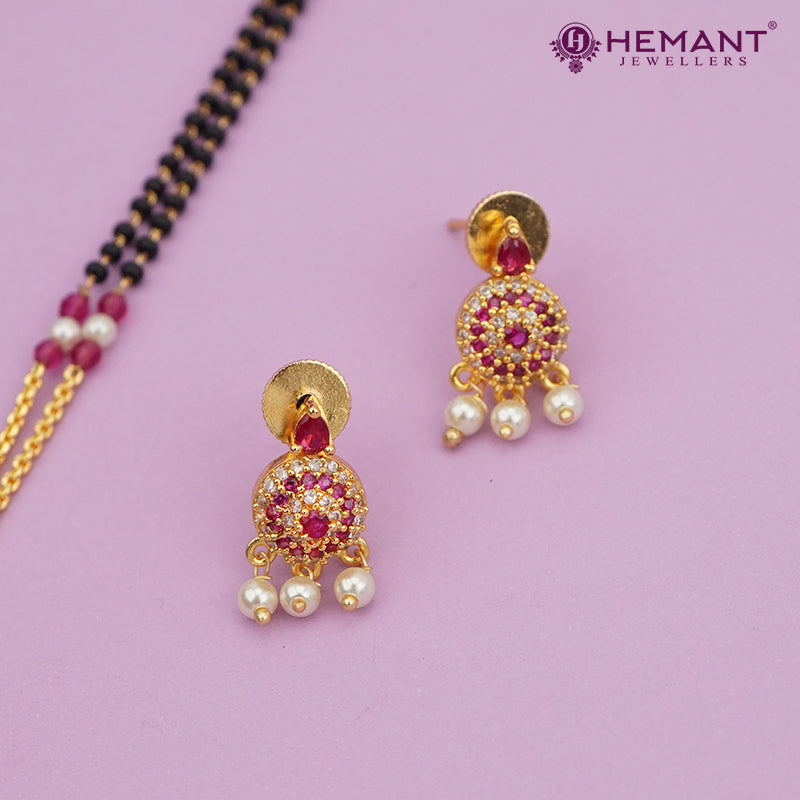 Gold-Plated Beaded Mangalsutra with Matching Earrings 4259