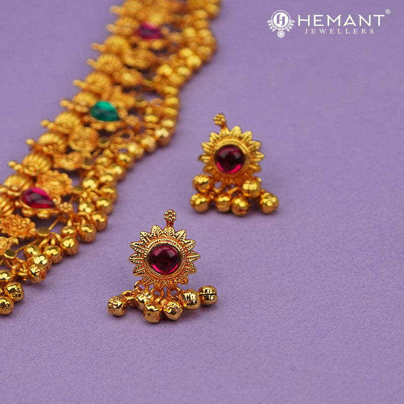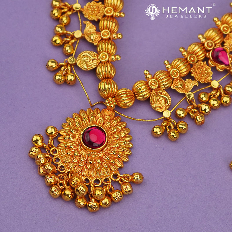 Traditional Maharashtrian Kolhapuri Saaj Geru 3 Panadi 15 Pan Surya Pendal (with Earrings)