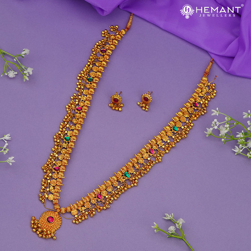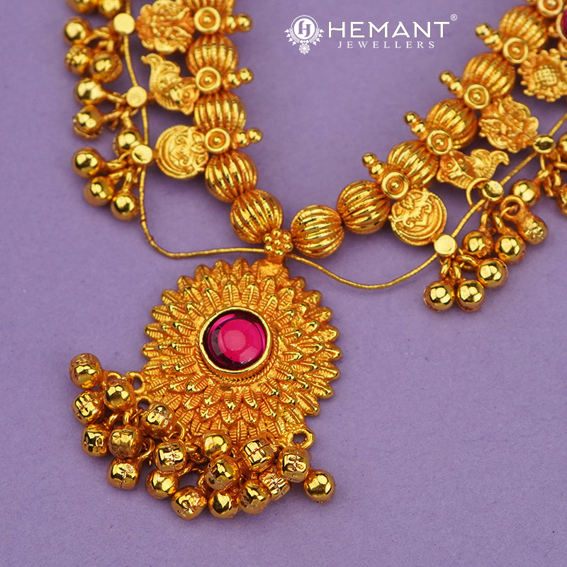 Traditional Maharashtrian Kolhapuri Saaj Geru 5 Panadi 29 Pan Surya Pendal (with Earrings)